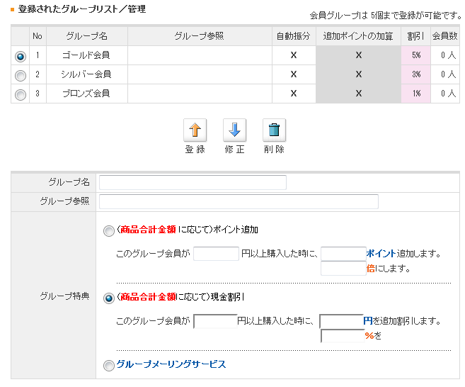 【会員管理 > 会員管理 > 会員グループの設定 > 会員グループ作成/削除】